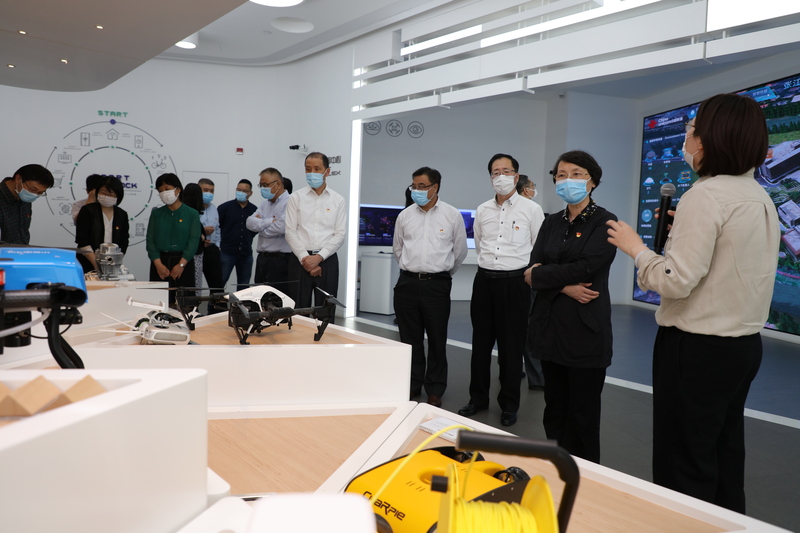 校领导一行首先到国内首个“5G+AI”全场景应用示范园区张江人工智能岛体验中心参观学习,依次沉浸式体验了AI+家居、AI+校园、AI+医疗、AI+金融、AI+制造、AI+园区管理等6大应用场景区和AI产品展示区,了解人工智能发展简史和上海在创新策源方面取得的成绩,零距离体验未来社会的生动场景,全方位感受人工智能的科技魅力。